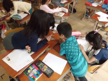 理科の学習で、モンシロチョウの幼虫を観察していました。
