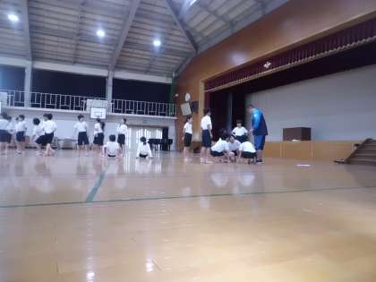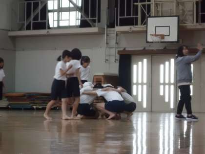 6年生は運動会に向けて組体操の練習をしていました。