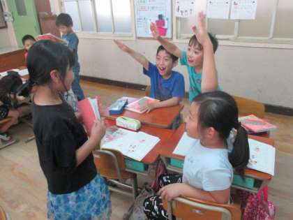 友だちの話を聞きあい,質問をしたり感想を言ったりします。