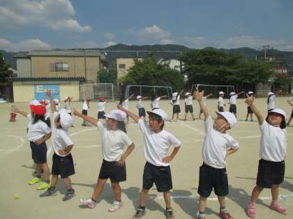 運動会まであと5日。運動場での練習も始まり,いよいよ本番まで,最終調整をする毎日となりました。本番,成功するために暑い中,一生懸命がんばっています。かっこいいポーズも決まりましたね。