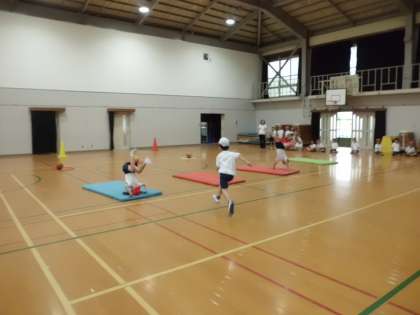 今日は,運動会に参加するために,お友だちが池田小学校に来て,障害物走と玉入れの練習をしました。