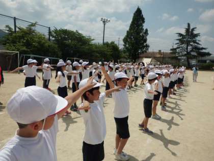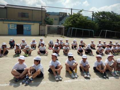 とても暑かったのですが,きれいに列に並んだり,力いっぱい声を出して応援練習をしたりしました。