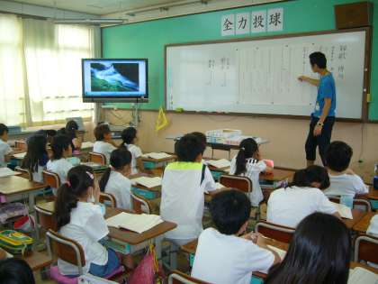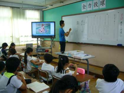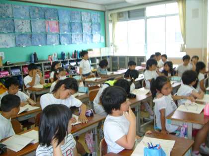 4年生の国語の時間です。「俳句・短歌」を声に出して読み,