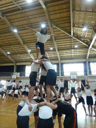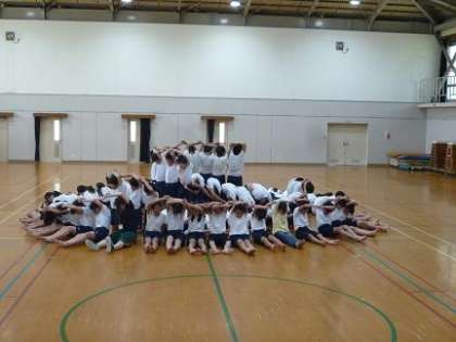 組体操の最終練習が終わりました。修学旅行を終え,3週間の練習期間には様々なことがありました。うまく技が決まらなかったこと自分だけどうしてもリズムがとれなかったこと・・・そんな時,友だち同士で声をかけあい,何度もも曲を聴き,練習してきました。6年生にとって最後の小学校での運動会です。それぞれの競技と準備や応援,放送など6年生としての役目をしっかり果たしてくれることと思います。精一杯頑張ったと言える1日になるはずです。