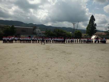 全校練習で綱引きをしました