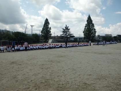 全校児童で並んでみましたが人数が多すぎたので