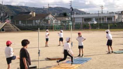 この学習には苦手意識を抱いている子どもたちもいますが、グループで役割を決めて声をかけ合いながらがんばっています。「〇センチ、とべた!」と嬉しい声も聞けました。