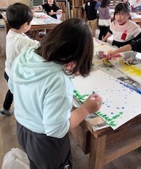 前回は、グループで大きな模造紙にダイナミックにスタンプを楽しんだので