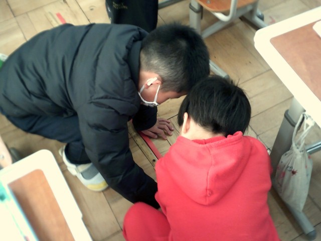 2年生の算数では「100cmをこえる長さ」の学習が始まりました。手を広げた長さは何cmかを予想して実際に測ってみました。予想とは違い100cmをこえる長さだったので驚いていました。