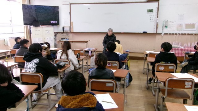 今日は、地域でお世話になっている秋田さんに、ゲストティーチャーとして来ていただき、「少年補導」のお仕事の内容についてお話を聞かせていただきました。毎朝正門でみんなを見守り、挨拶をしてくださっている秋田さんは日野キャンプでもみんなのお世話をしてくださいました。少年補導の活動がどのようなものなのかをわかりやすく説明してくださいました。また、質問では、「大変なことはありますか?」「若い人もいますか?」など子どもたちの疑問に丁寧に答えていただきました。ありがとうございました。