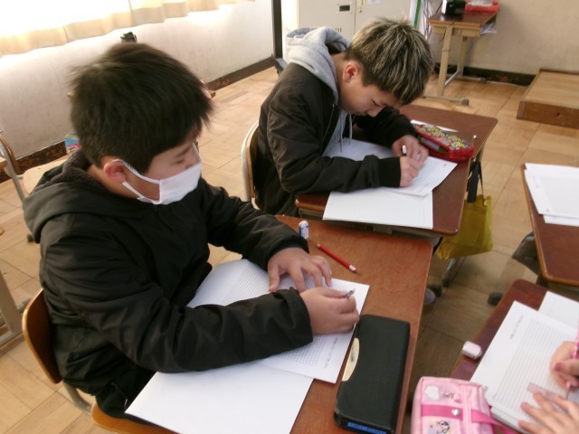 算数の学習では、三角柱と円柱の展開図を書くことに挑戦しました。