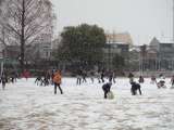 今日は午前中,たくさん雪が降りました。 学校の運動場や,中庭に少し積もったので,...