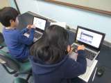 パソコンルームに行って,ローマ字のコンピューター入力の練習をしています。まだロ...