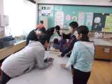 ネットの中,落ち葉の中に隠れている幼虫を 皆で丁寧に探し,容器に入れ冬籠りさせま...