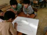 グループに分かれ、地域の探検に行き聞いていたことを発表しました。クイズにしたり、...