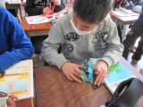 1年生と4年生からプレゼントをもらいました。 とっても嬉しそうです。