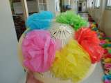 運動会で踊る「花笠音頭」で使う花笠が仕上がりました。 1・2年生だけではお花を上...