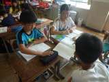 3年生は給食を食べていました。 教室の後ろではアゲハの幼虫が蛹に なり始めていま...