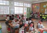 給食の時間に,4月と5月にお誕生日をむかえたお友だちのお祝いをしました。 みんな...