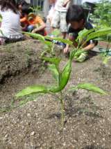 生活科の学習で植えた,野菜たちがぐんぐん生長しています。 子どもたちは,朝,学校...