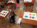 絵具の使い方を覚え,楽しんで絵具の学習に取り組んでいます。今日は,2色の絵具を混...