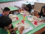 食育で食品添加物について学習した後に,ランチルームで給食を食べました。 5年生に...