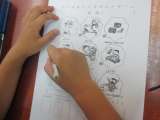 図工の時間,あじさいのちぎり絵をしました。 色紙を細かくちぎり,あじさいの絵に仕...