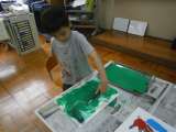今日は,絵の具を使って「たなばた飾り」を作りました。画用紙にローラーで色をぬった...