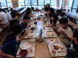 「先生見て見て!写真撮って!」と子どもたちが大騒ぎ。 見に行ってみると,朝食のメ...