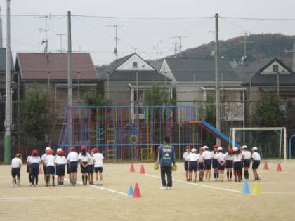 真冬のような寒さの中,3年1組は元気いっぱい体育をしました。同じ時間に,2組は,図工で彫刻刀を使って版画をしました。