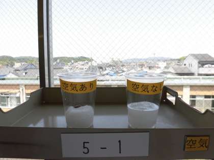 続いて,「空気が必要だろうか」という学習問題をもち,実験開始しました。
