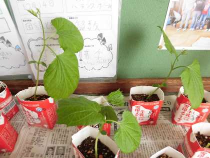 4月26日(木)に植えたツルレイシが,だいぶ大きくなりました。