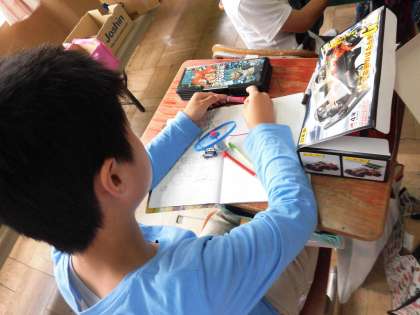 今日は,モーターを乾電池で動かし,そのモーターを反対に回すにはどうすればよいかを考えました。