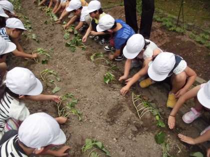 京都青果合同株式会社と徳島県のJA里浦の方々のご協力で,なると金時「里むすめ」の苗を植えました。