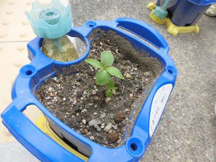 ホウセンカとヒマワリがぐんぐん成長しています。