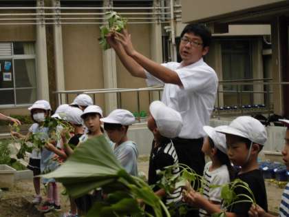 京都青果合同株式会社様との連携による「食育の授業」を行いました。徳島のJA里浦の皆様にお越しいただき,本場サツマイモ(なると金時里むすめ)の苗をいただいて,植え方も教えていただきました。毎日お水やりをしっかりして,おいしいおいもができるのを楽しみに世話していきたいと思います。