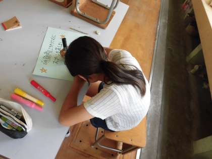 給食のスプーンの返却のルールを守ってもらうべく,どんなポスターにしたらよいか考えながら作成していました。