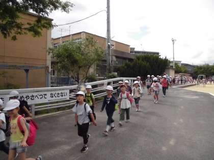 1・2年生が,遠足で京都市動物園に向けて元気に出発しました。