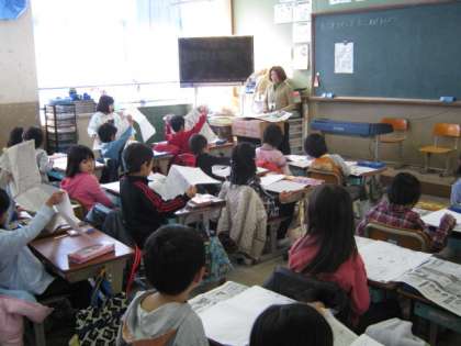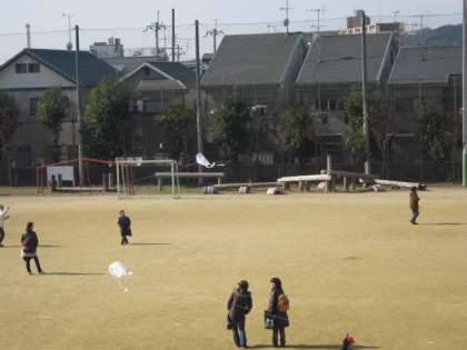1年生は,ぐにゃぐにゃだこを作り,できた人は運動場で揚げました。風が強かったので,たこは揚がりやすかったと思います。