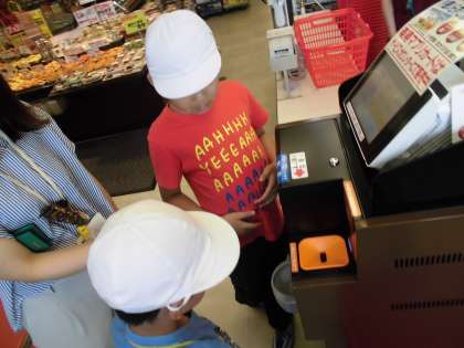 来週,石田小学校のくすのき学級の子どもたちと行う予定の,「あおぞらまつり」の準備として,スーパーに「お買いもの学習」に行っていきました。買い忘れがないように買う物をチェックする役割や,合計でいくらになるかを計算する役割をしながら,お買いものをすることができました。