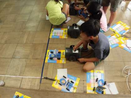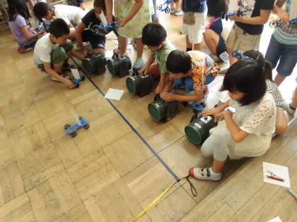 前回はゴムの力で車を動かしましたが,今回は風の力で車を動かしました。