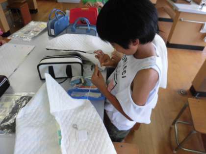 このナップザックは,9月からの長期宿泊学習でも使うということで,みんな張り切って作業しています。