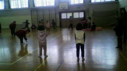 地域の女性会の方々に来ていただき,「昔遊び」を教えていただきました。けん玉・羽根付き・こままわし・あやとり・お手玉・ゴム跳び・竹とんぼを,教えていただきました。
