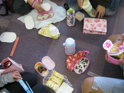 1・2組いっしょに多目的ルームに集まり,楽しくお弁当を食べました。