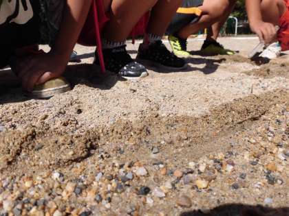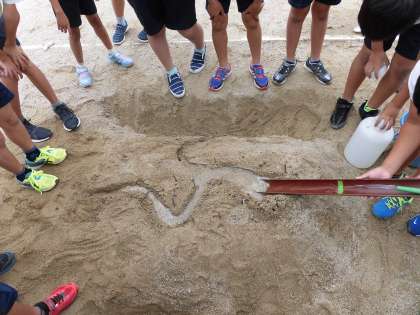 子どもたちは,砂場での実験ということもあり,おおはしゃぎで学習していました。