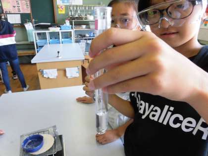 今回は,その溶けた水溶液には,アルミニウムがまだ溶けているのかを,蒸発させてたしかめました。