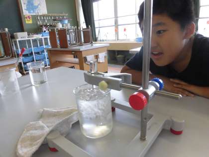 空気よりは変化は小さかったのですが,水も同じく,あたためると体積が増え,冷やすと体積が減ることがわかりました。