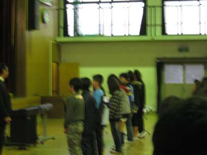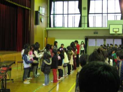 賞状授与の後は保健委員会からの連絡がありました。ハンカチ・ティッシュ調べで毎日持ってきた人を表彰しました。各クラスの代表が賞状を受け取りました。
