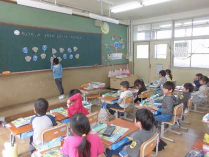 今日の算数では教科書の絵を見て,「どちらのちょうちょが多いか」について考えました。