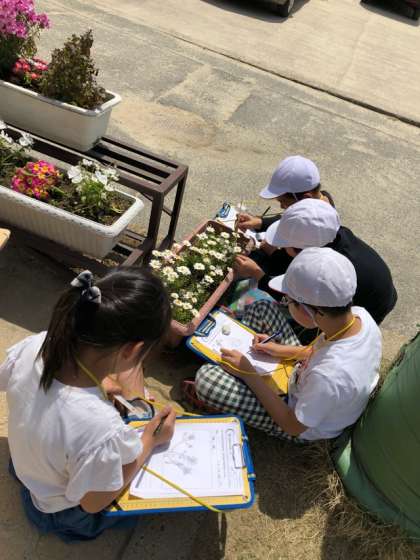 虫メガネやルーペの使い方も習って,春のしぜん博士になって探検に行きました。「アリがいるよ!」「このお花何ていう名前だろう?きれい!」と,班でたくさんの春のしぜんを観察しました。観察の時には,色・形・大きさをしっかり観察することが大切だということも学びました。みんなはどんな春をみつけたのかな…?